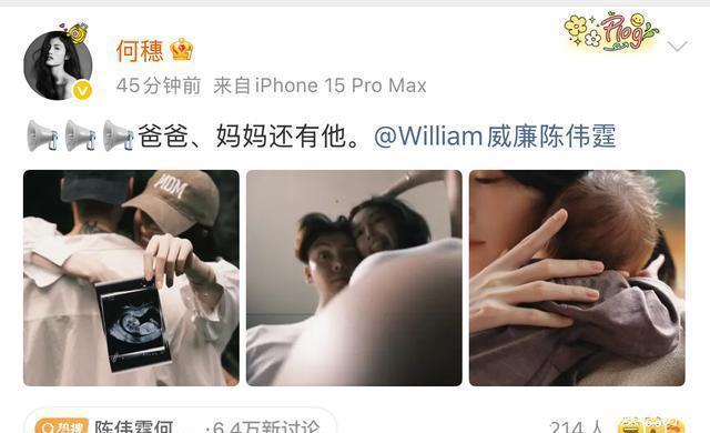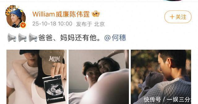?????? 10日,知名演员陈伟霆与知名超模何穗在微博同步晒照并配文“爸爸、妈妈还有他”,甜蜜@对方,官宣生子。