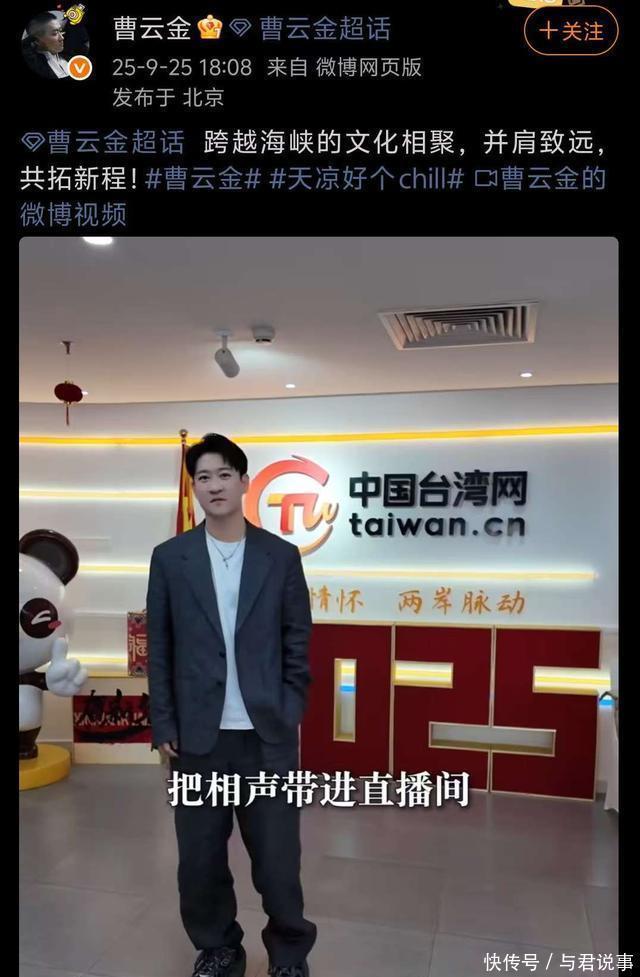 ?????? 现在的曹云金官宣了自己的全新身份,撕碎了郭德纲所剩不多的体面。?????? 全新身份?????? 就在今号的时候,金子在社交平台发布了一条全新动态,内容是他参加了一个活动,?????? 当然这个活动并不一般,这个活动的主题是促进海峡两岸的文化、科技等交流,金子不仅受邀参加了这场活动,并且还登台发言了。