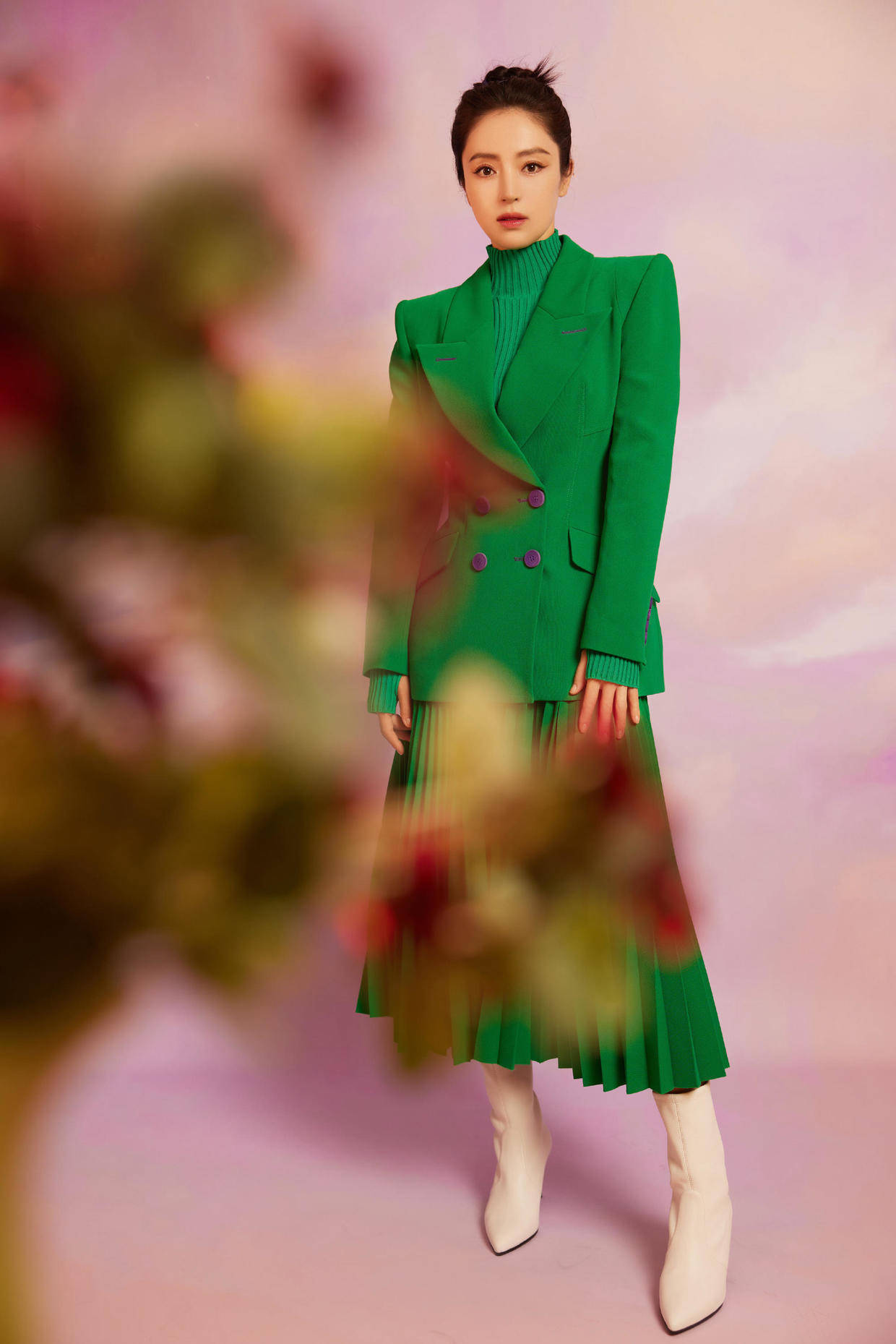 倘若你在穿搭选择上犯愁,不妨多留意女明星们的时尚造型。对于她们而言,穿搭与保养至关重要,堪称时尚潮流的引领者。就像董璇,此次身着绿色套装亮相,以西装、高领衫与褶皱半裙的组合,营造出浓郁的女人味,同时散发着吸睛魅力,特别值得同龄女性借鉴,照着搭配基本不会出错。