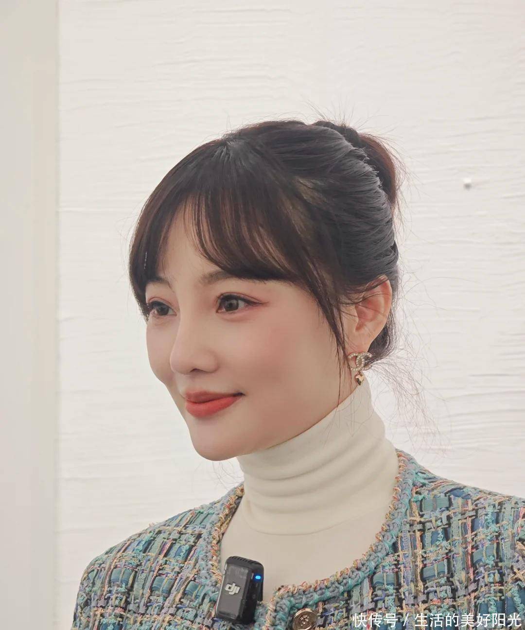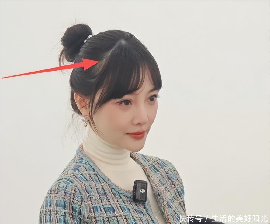 还有发型,丸子头虽然清爽,但也让发缝问题变得格外显眼。宽宽的发缝,让整个人看起来多了几分老气,和她平时视频里浓密秀发的模样,形成了鲜明对比。