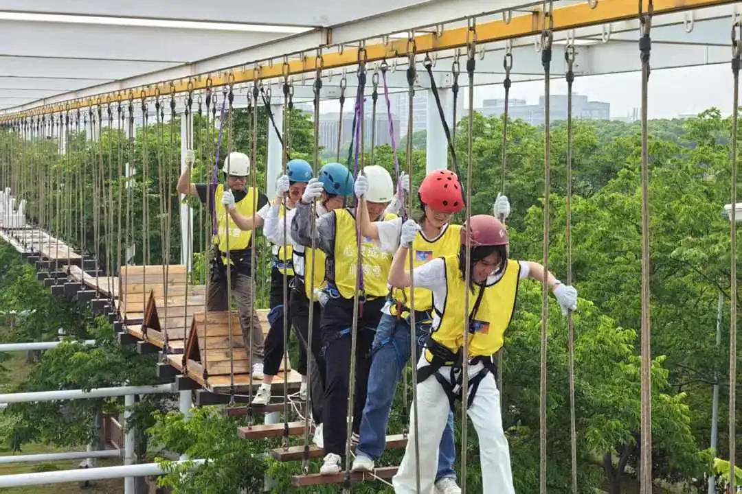 “能量打卡集市”由各高校分别设立主题摊位,通过心理知识问答、艺术疗愈体验、压力测试互动等丰富多彩的形式,为师生提供寓教于乐的心理健康知识普及,在体验的乐趣中帮助学生掌握心理调适方法?!?#32032质拓展运动”环节则包括了攀岩、射箭、高空步道、速降、平台舟等特色项目,充分体现了“以体强心、身心融合”的工作理念,让学生在挑战自我、突破极限的过程中释放压力、增强自信。
