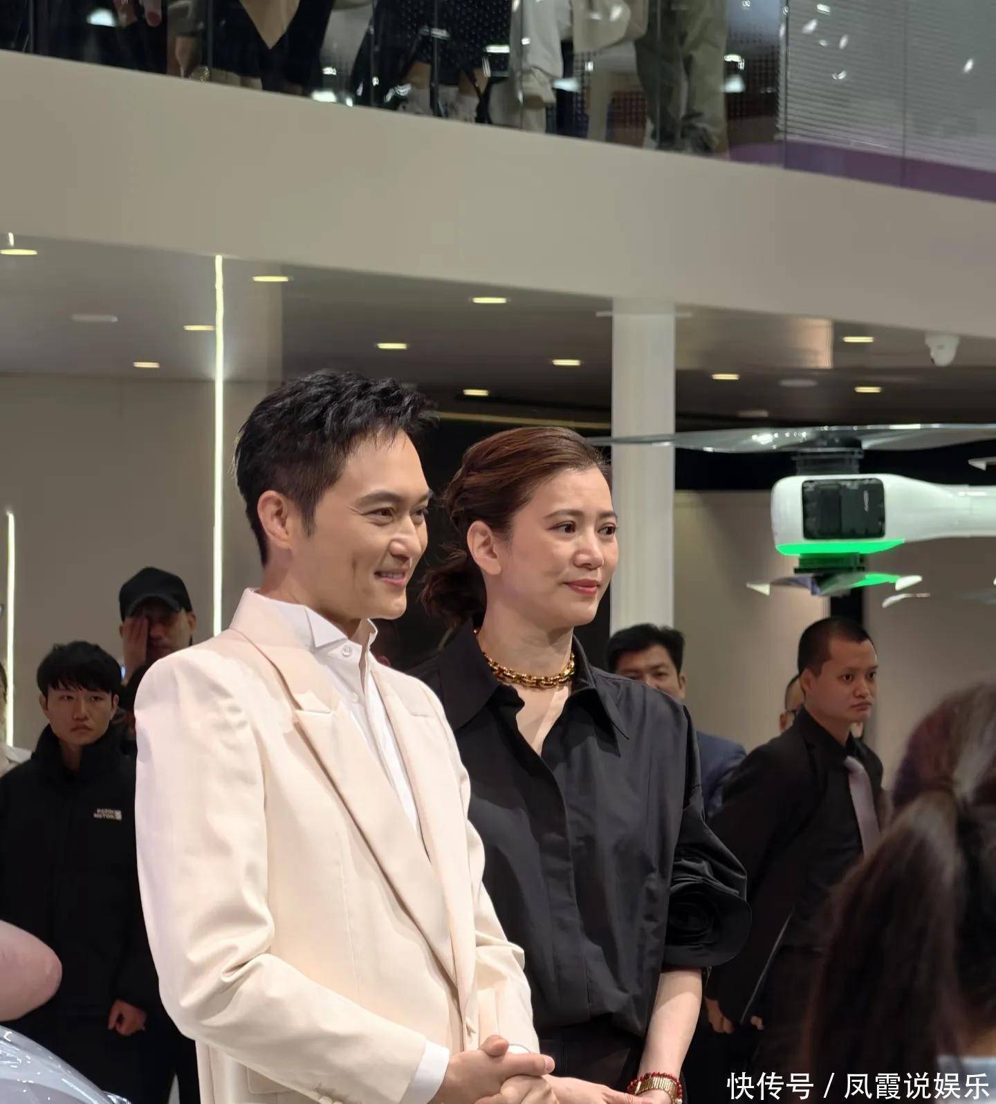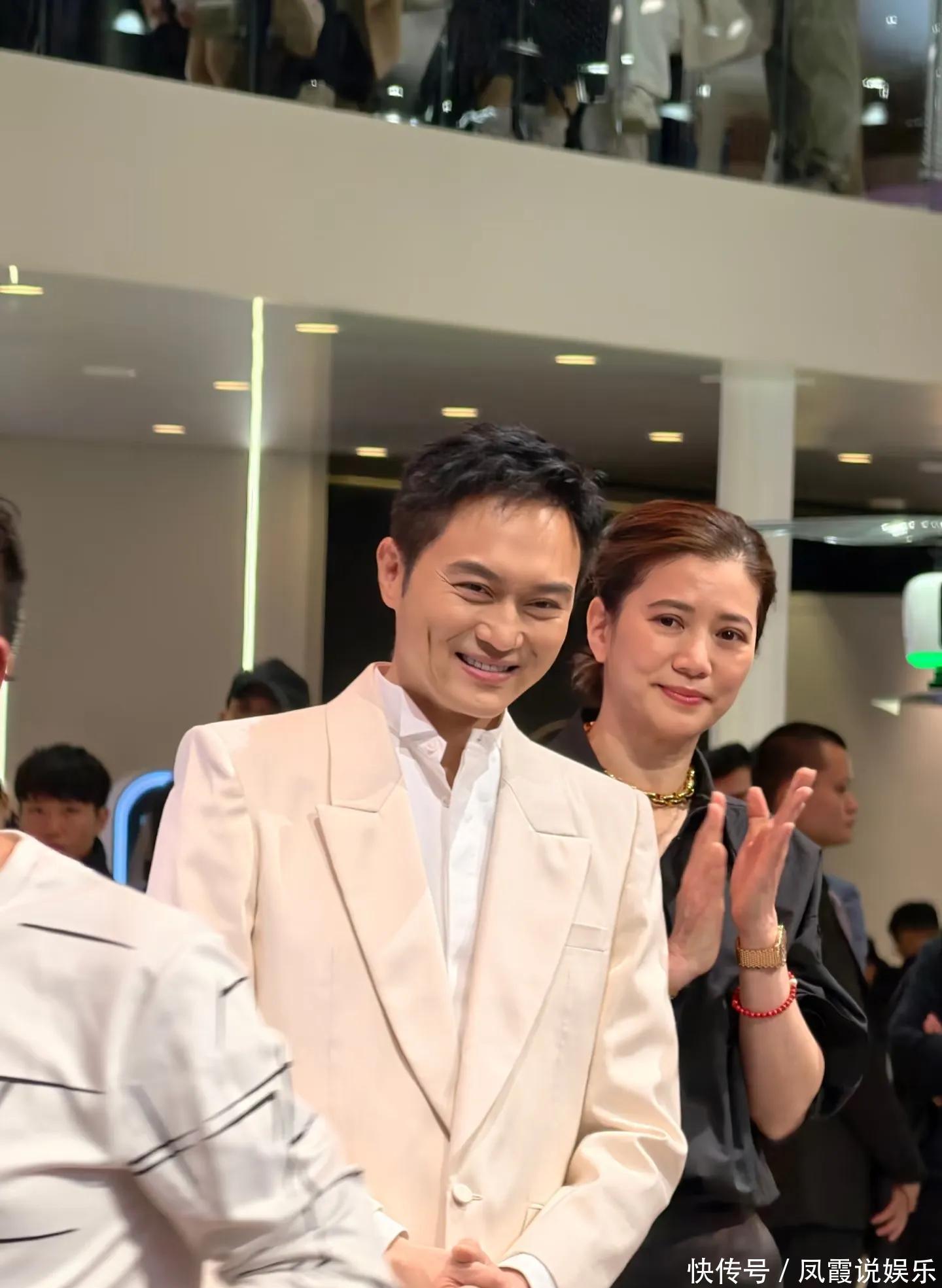 张智霖穿着白色西装非常俊气,袁咏仪则是一身黑色,夫妻俩一白一黑,夫唱妇随。袁咏仪当天的发型也很有特色,为这场活动好好准备了一番。