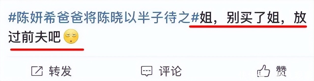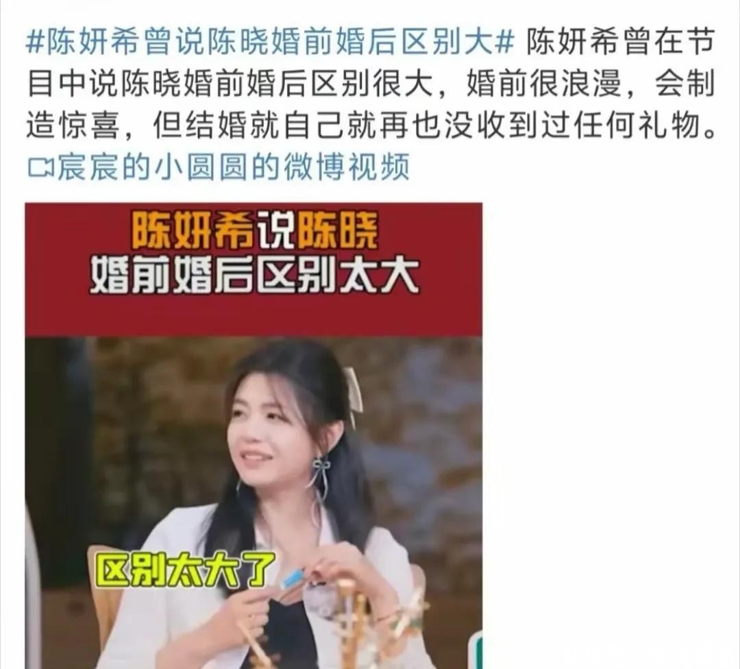 此后关于婚姻破裂的消息接连不断。2020年,有人拍到陈晓摘下婚戒;2023年,传出两人早已分居;陈妍希生日当天,陈晓微博毫无动静。