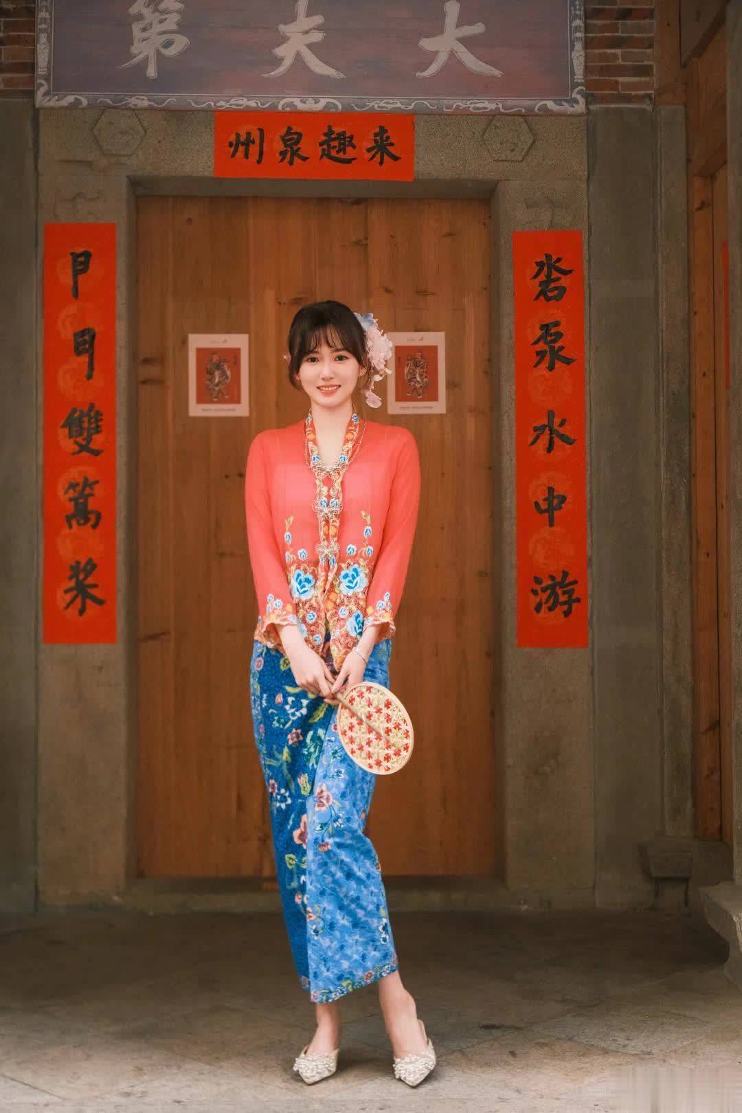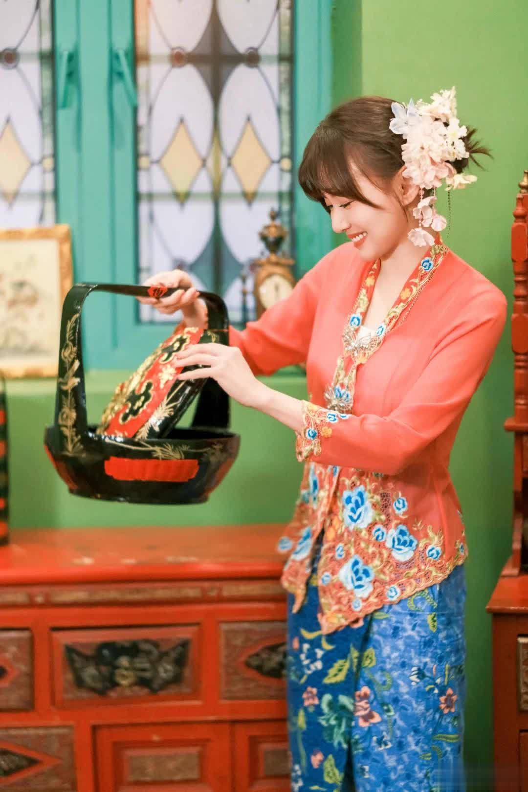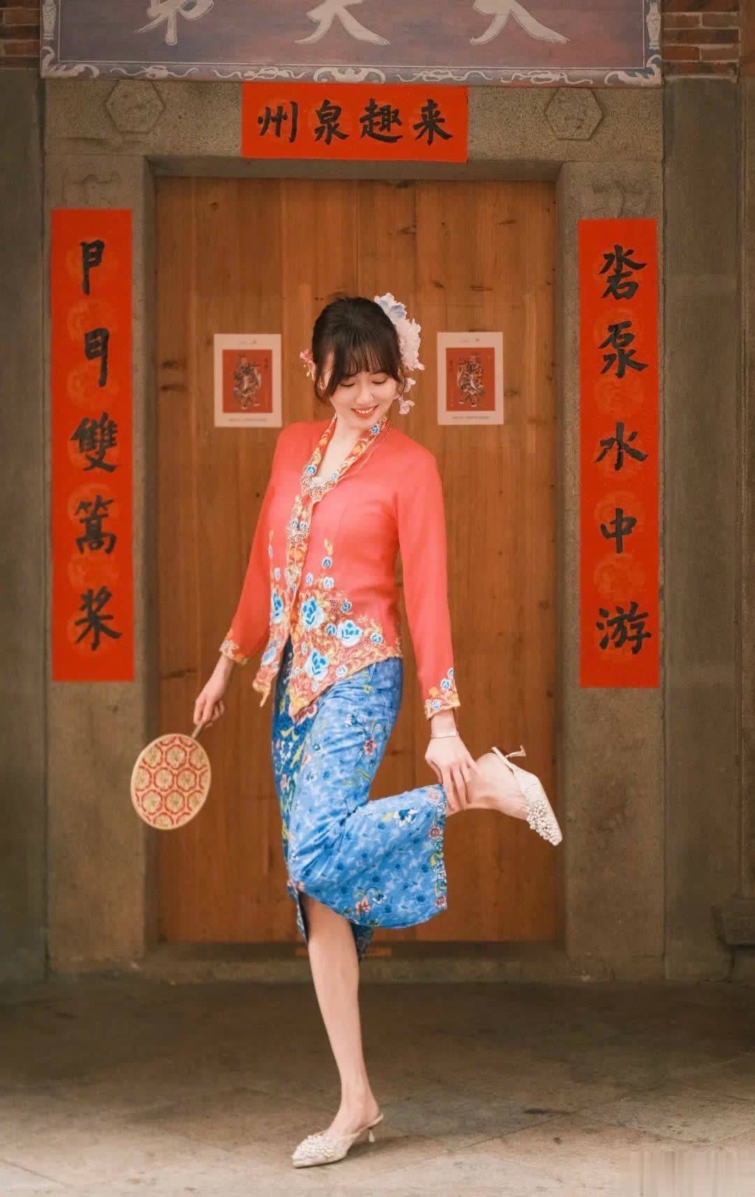 一套精致刺绣的娘惹服,配上她这个一等一的修身身材。