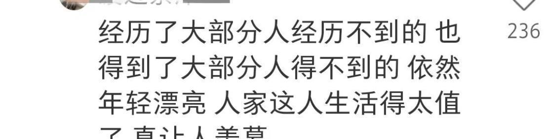 也有网友留言称:经历了大部分经历不到的,也得了大部分人得到的....真让人羡慕!婚姻,孩子,财富轻而易举的收获了。