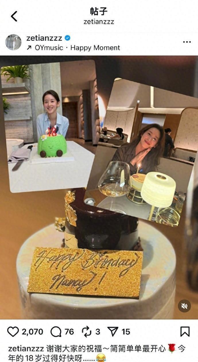 11日,章泽天晒出自己生日的照片,配文:谢谢大家的祝福~简简单单最开心,今年岁过得好快呀......