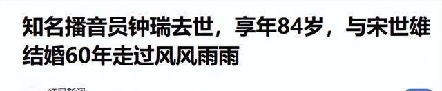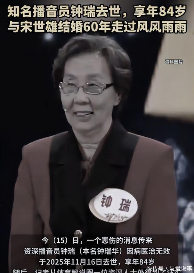 ?????? 这则消息如惊天霹雳般打在了丈夫宋世雄的头上,更是让无、80、90后的人感到惋惜。?????? 这位与他相年的老伴,终究没能和他走完最后一段归途。?????? 虽然钟瑞华走了,但她那刻进岁月里的声音,将永远留在我们的记忆里。?????? 参考资料:2025.12.15