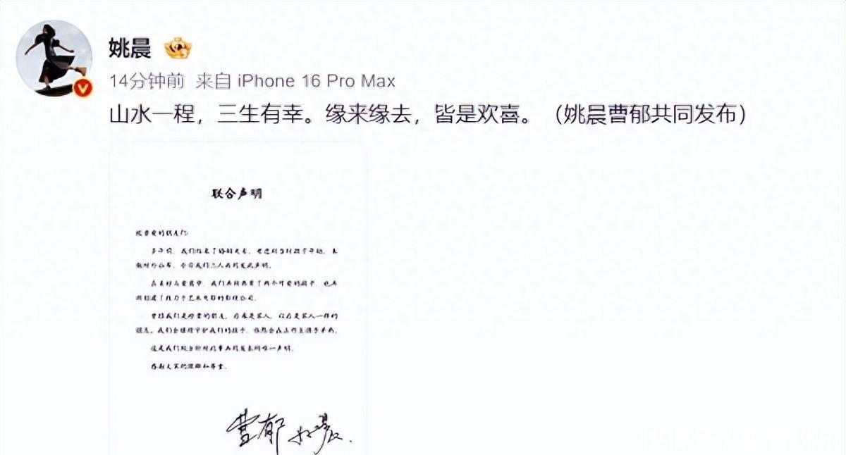 ?????? 姚晨和曹郁这婚离得,表面看着风平浪静,实则全是算计。3 月 26 日官宣那一刻,娱乐圈直接炸锅。明明声明里写得温情脉脉,说什么为了孩子才隐瞒多年,可仔细一琢磨,全是漏洞。早在 2025 年,两人其实就办完手续了,但那一年他们也没少同框啊。5 月逛艺术展有说有笑,曹郁当上奥斯卡评委姚晨还发文祝贺,金鸡奖也被拍到一起返程。那时候怎么不想想孩子?偏偏等到商业关联彻底切断、公司注销干净了,才想起来公开?这哪是顾虑孩子,分明是利益分割没谈拢罢了。