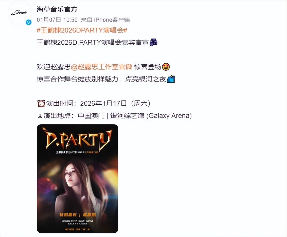 2026年初,王鹤棣在澳门举办“D.PARTY”个人演唱会正式官宣。
