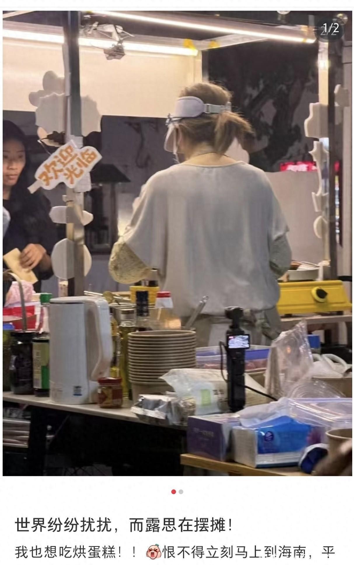 ?????? 谁能想到,赵露思居然在海南夜市里一个人支起小摊,亲手烤蛋烘糕?没助理、没摄像、没剧本,就她自己,戴着蓝帽子、紫手套,袖套上还有点花,素着脸,动作麻利得像干了好几年的老手。