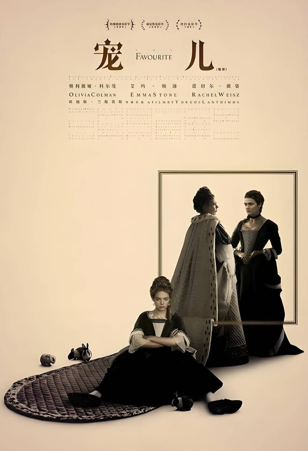 该片讲述世纪英国宫廷中两位女性为争夺女王宠爱而勾心斗角的故事,奥利维娅·科尔曼将女王的脆弱、癫狂与威严演绎得淋漓尽致。