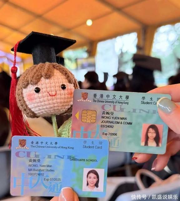 黄婉曼发文说︰I have a Master's degree in Buddhist Studies from CUHK. 二十年前,爸爸和嫲嫲来见证我学士毕业。今天,我终于毕业拿到硕士学位啦!他们都走了。我已经四十多岁了。陪着我的是老公和两个闺女。这就是生活嘛。