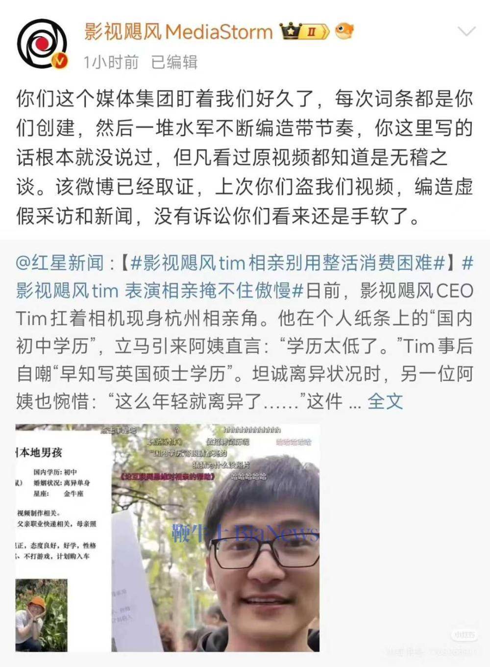近日,影视飓风CEO潘天鸿(Tim)发布自带简历去杭州相亲角的视频,其中简历的低调引发争议,被网友称其在“玩儿皇帝微服私访的烂梗过瘾”。