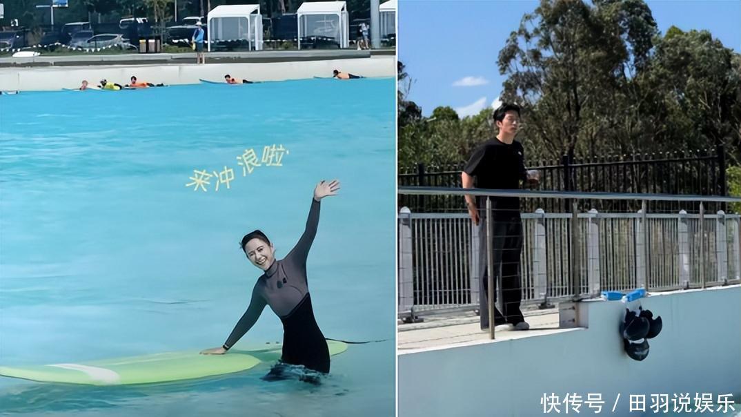 他们还一起去冲浪,当然,是窦骁看着妻子去玩,对方还在水里和他打招呼,看上去玩的非常开心。可以看出来,两人的互动没有任何不自然,也没有被所谓的“婚变”影响。