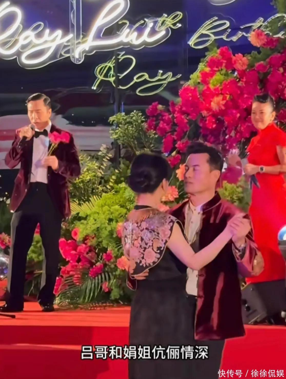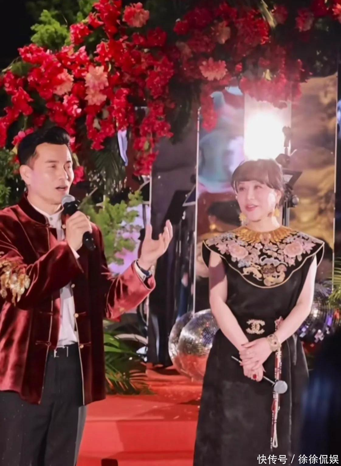这场面你说得过分点,都快赶上颁奖典礼了。谁不想在自岁生日时,把娱乐圈老中青三代都请来撑场?但吕良伟真的做到了——从甄子丹、袁咏仪、向华强夫妇,到草蜢、巫启贤、胡兵、张耀扬……一个比一个有看头。登场方式更夸张,宴会直接玩新中式,全体嘉宾古装+西服轮番切换,氛围感实在太强。寿星吕良伟和老婆杨小娟当晚换了两套衣服:他穿新中式西装特别精神,还能这样帅岁,求保养秘诀!杨小娟裙子配香奈儿腰带,绝对懂中西混搭,咳,懂会玩。