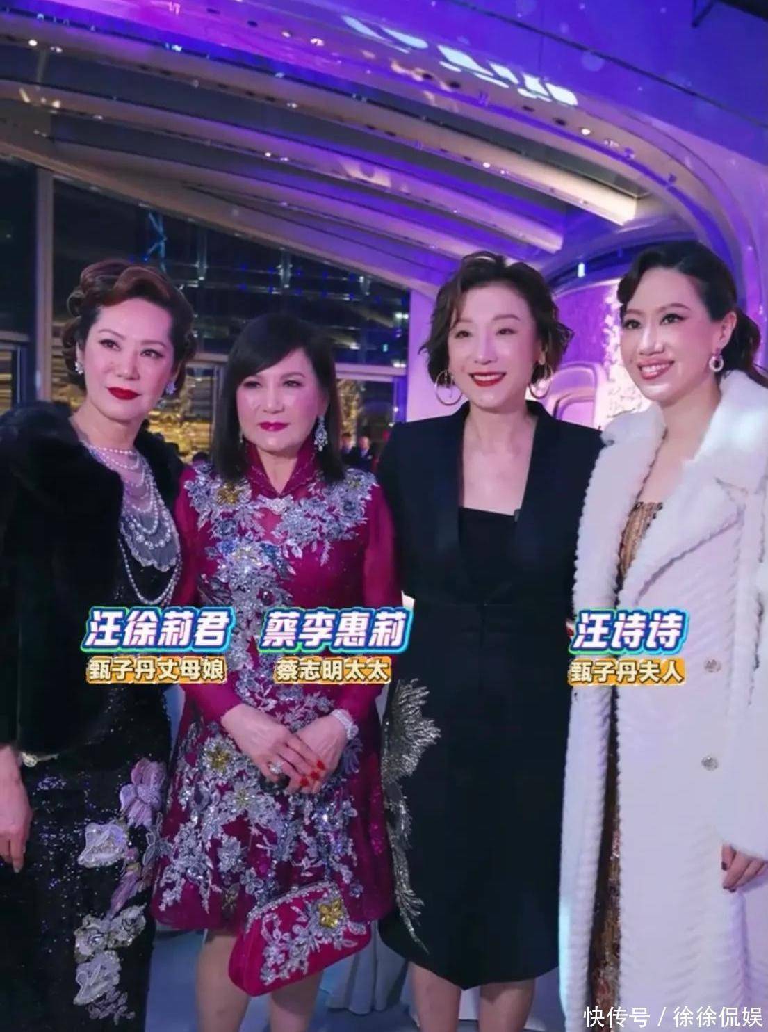 一桌大咖里,甄子丹和他出双入对。两人座位紧挨,一副亲兄弟的画风。这男神组合,为啥气质这么年轻?要说最吸睛的,当属甄子丹一家三口——老婆汪诗诗本身够靓,丈母娘汪徐丽君一上镜,皮草、大珍珠项链一披,民国阔太气场直接拉满,居然比女儿还嫩,这是怎么排基因的啊?旁边蔡志明老婆也满脸金贵气势,不知道现场聊什么,反正照片看了谁不得感叹一句:富贵人家的快乐别人想象不到。