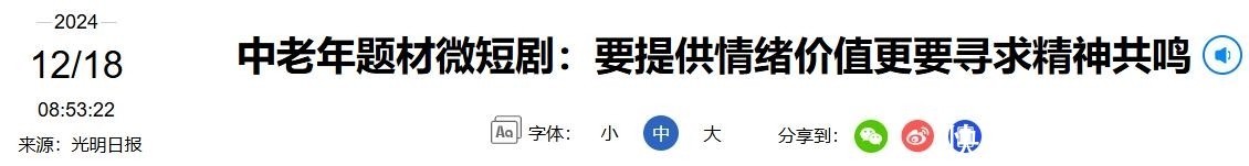 信源来源:2024.12.18 光明日报 中老年题材微短剧:要提供情绪价值更要寻求精神共鸣