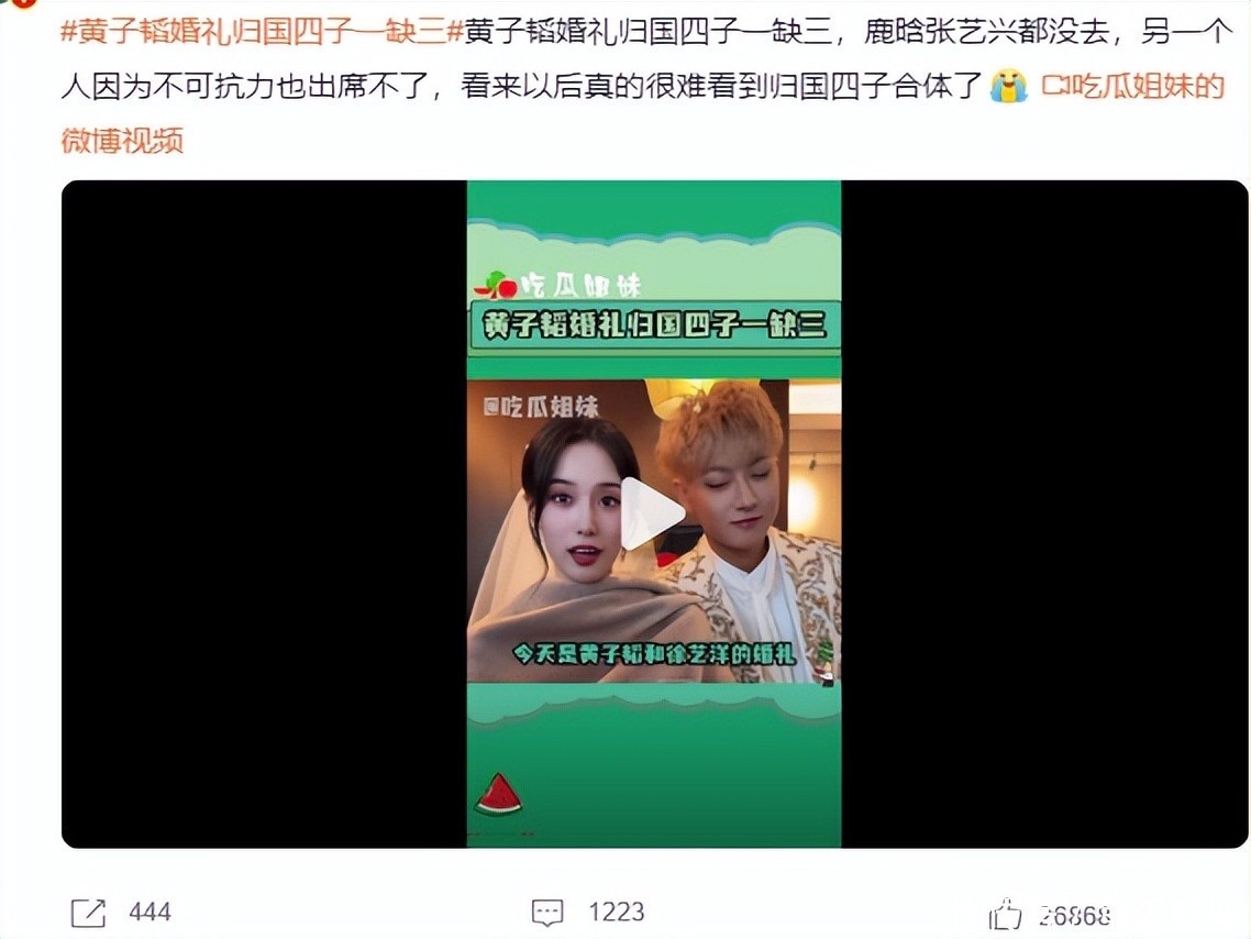 还有网友评论:"黄子韬这场婚礼,把娱乐圈人情冷暖全演透了。"