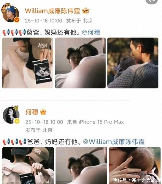?????? 近日,演员陈伟霆与超模何穗同步在微博官宣生子喜讯,配文“爸爸、妈妈还有他”,并晒出B超合影、孕期合照及抱娃特写,瞬间引爆全网热议。