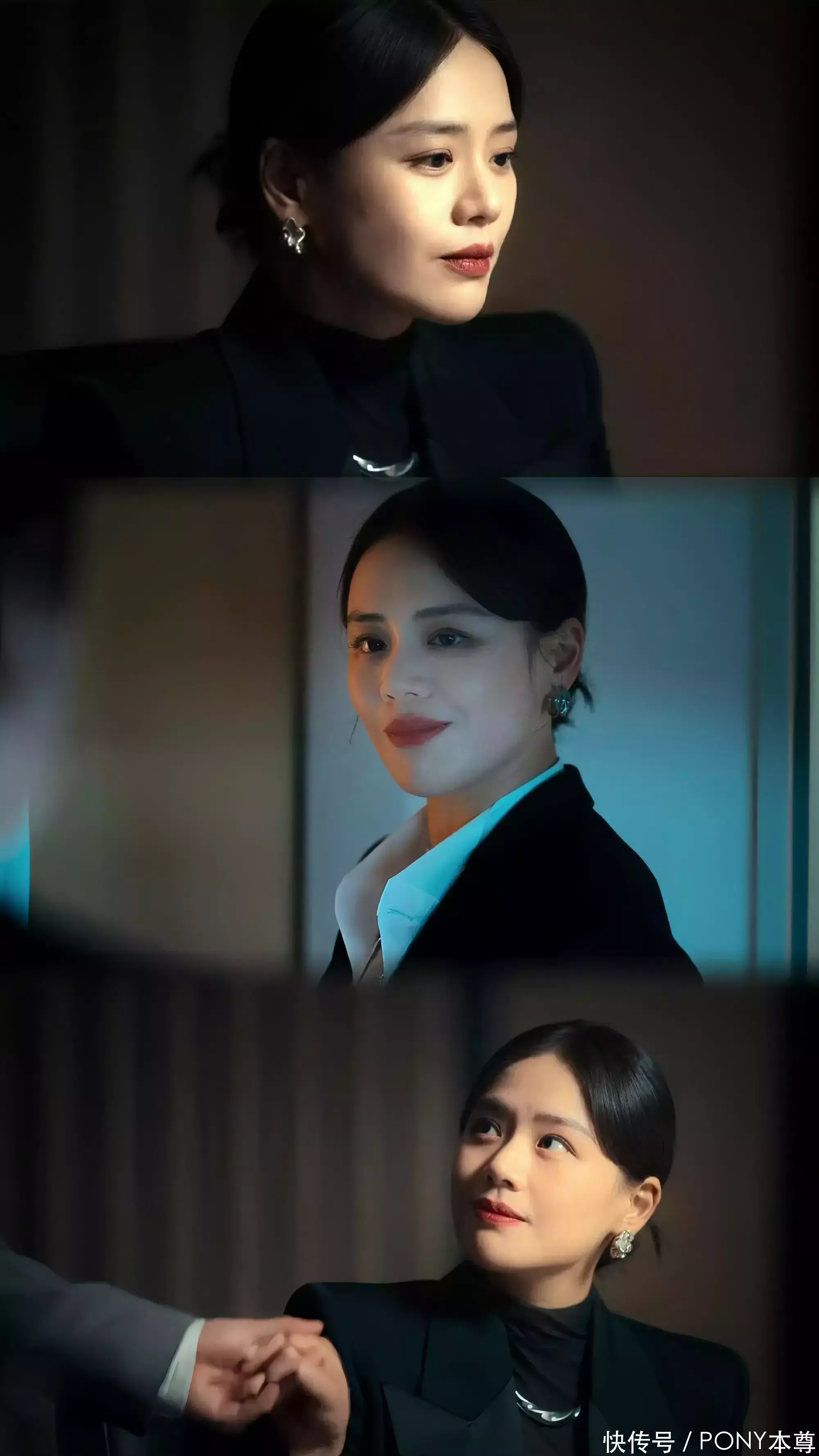 在处理集团事务时,发型也是她的氛围感利器。比如身穿黑色西装时,她搭配了中分低扎丸子头,搭配精致的妆容,和存在感十足的耳环,项链,让她自带一种不好惹的气场。
