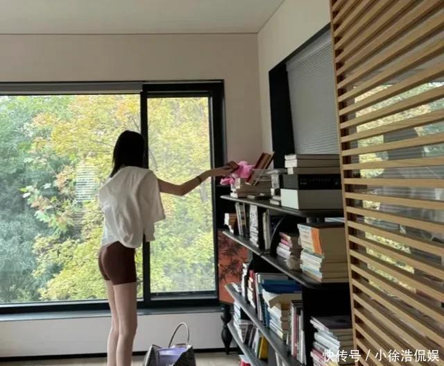 你看她弯腰整理书架那张,背影干净利落,一点疲态没有。产后能做到这个程度,背后得有多少自律和调理?但人家压根没提什么饮食计划、运动打卡,一切就像随手记录的生活片段。这种云淡风轻的劲儿,反而更让人觉得真实。