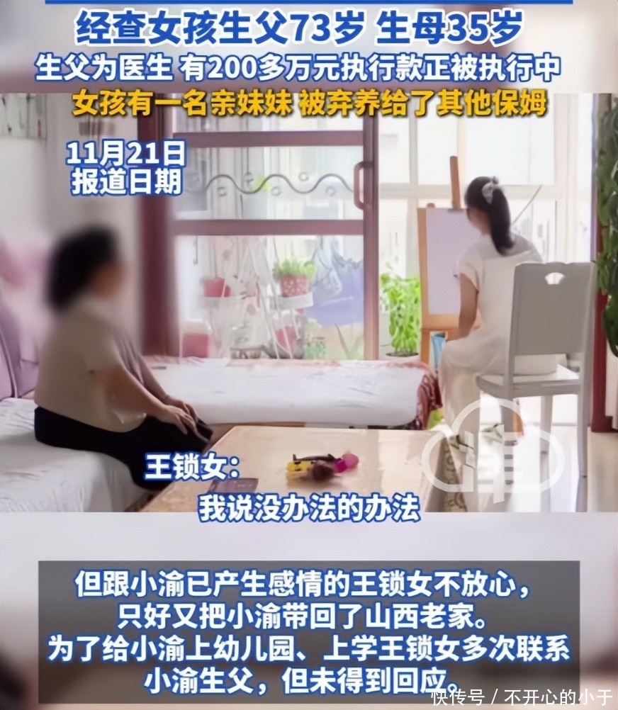 到了过年的时候,小渝的生父提出让王锁女把小渝带回山西继续照料。