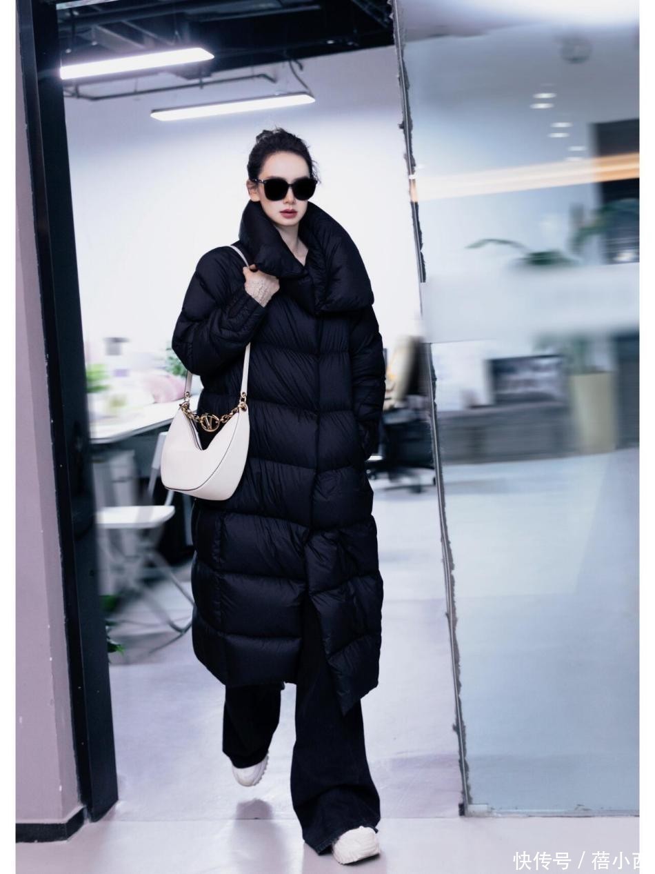 羽绒服、裤子为黑色面料,肩上的包包和鞋子颜色为白色,整体穿搭只有这两颜色的话,会显得人干练、年轻。中长款羽绒服与短款相比,其覆盖面积更多。裤子都快要拖地了,大家要谨慎选择。