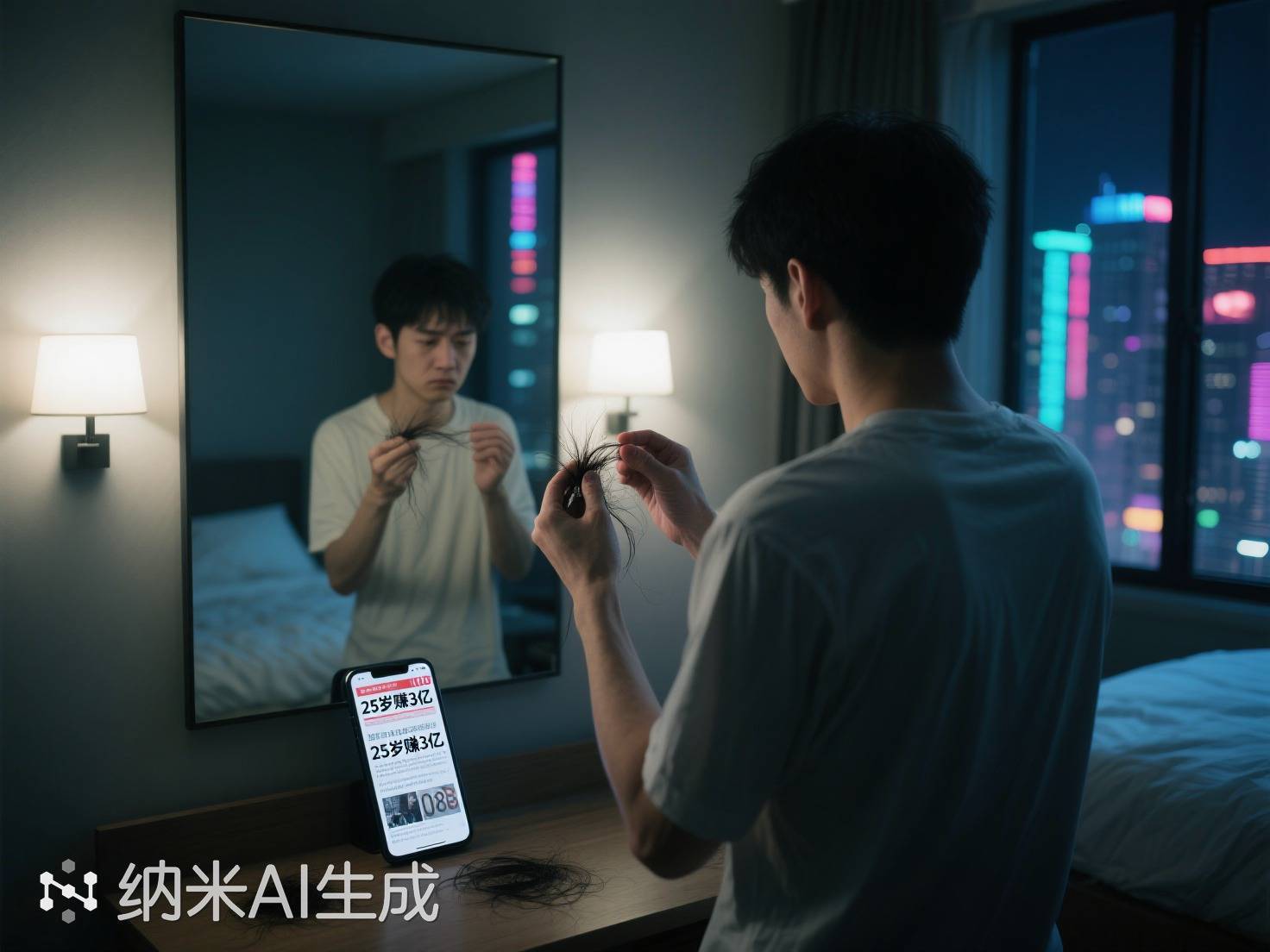 凌晨两点,我盯着手机屏幕里那个叫古尔巴克斯岁印度裔美国人,他第三次创业的消息像根针,扎得我太阳穴突突直跳。新闻配图里他穿着高定西装,站在纳斯达克大屏前比耶,而我刚在浴室地漏里捞出根头发。这数字比上个月多根,比去年同期翻了倍。 公司楼下便利店的关东煮是我最近的晚餐标配。上周老板在会上拍着桌子说“25岁就该敢想敢干”,转头给我们看他朋友圈里那个开私募的侄子——和我同岁,已经在三亚买了海景别墅。我摸了摸自己日渐后移的发际线,突然想起大学时室友说我“发量多到能当假发模特”。现在每次洗完头,水池滤网都像铺了层黑色苔藓,得用镊子才能清理干净。 昨晚刷到个帖子,说某大厂程序员为防脱发,把生姜切片贴头皮,结果过敏肿成寿星公。我对着镜子扒开头发,发现头顶确实能看见头皮了。药店里的米诺地尔酊要三百多一瓶,够我吃半个月的便利店套餐。同事小王偷偷说他用了三个月没效果,反而狂长胡子,现在每天得刮两次。 地铁上刷到古尔巴克斯的采访,他说成功秘诀是“每天只睡四小时”。我打了个哈欠,昨晚改方案到三点,今早七点爬起来赶地铁。邻座姑娘对着小镜子涂生发液,瓶子上的英文说明和我手机里收藏的“防脱攻略”一模一样。车窗外掠过的广告牌上,25岁的明星代言着植发机构,笑容灿烂得像没掉过一根头发。 回到出租屋,我把根头发夹进笔记本。这是今年的第三本“脱发日记”,前两本已经写满了。书桌上还放着年初买的《25岁财务自由指南》,现在书角都卷了,里面夹着的工资条显示,扣除五险一金后还块。手机突然震动,是妈妈发来的消息:“隔壁小李家儿子考了公务员,头发乌黑浓密的”。 窗外的霓虹把房间照得忽明忽暗,我数着镜子里的自己:黑眼圈比熊猫重,抬头纹能夹死蚊子,唯独头发越来越稀疏。突然想起大学毕业时,我对着全班说要“30岁前赚够一个亿”,现在连保住头发都难。浴室里的吹风机还在嗡嗡响,地上又多了几根落发,我蹲下去捡,却怎么也数不清到底是第几根了。 凌晨三点,朋友圈有人晒刚签下的三亿合同,定位在陆家嘴顶层旋转餐厅。我摸出枕头下的米诺地尔酊,对着说明书挤𱄽ml,冰凉的液体流进头皮时打了个寒颤。手机屏幕亮起,新闻推送说古尔巴克斯又收购了家新公司,照片里他的头发依旧浓密得让人嫉妒。我关掉手机,把根头发夹进笔记本,明天还得早起打卡呢。