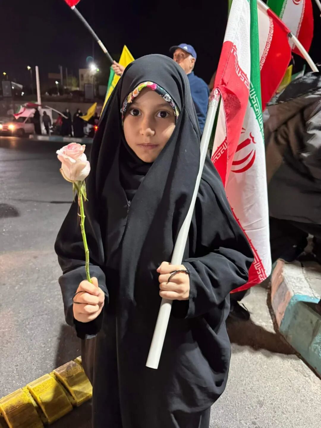 有一个穿黑袍的年轻女孩,举着国旗在街上挥舞。她很自豪地说,现在伊朗和以前不一样了,这一次伊朗是占上风的,美国只能接受条件;如果不接受,伊朗就控制霍尔木兹,还有导弹。他们就是要让美国被迫接受伊朗的条件再谈判。她说,无论美国接受不接受,伊朗都会坚决抵抗到底,直到胜利。