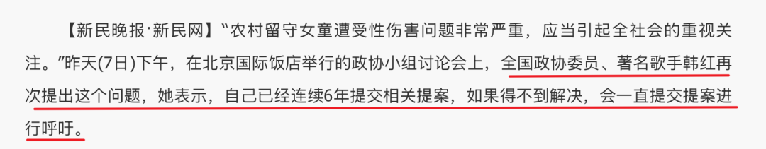 她常在公开场合谈到,自己打心底最关心的就是老人与孩子,她会因奶奶的去世,抑郁三年无法自拔,也会因农村留守女童频遭性侵,连年呼吁关注。