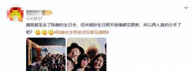 ?????? 不过网友们调侃过之后,竟有开始关心起来鹿晗的恋情。?????? 甚至有人展开灵魂发问:鹿晗有时间参加陈赫生日,怎么在关晓彤生日的时候装“透明人”呢?