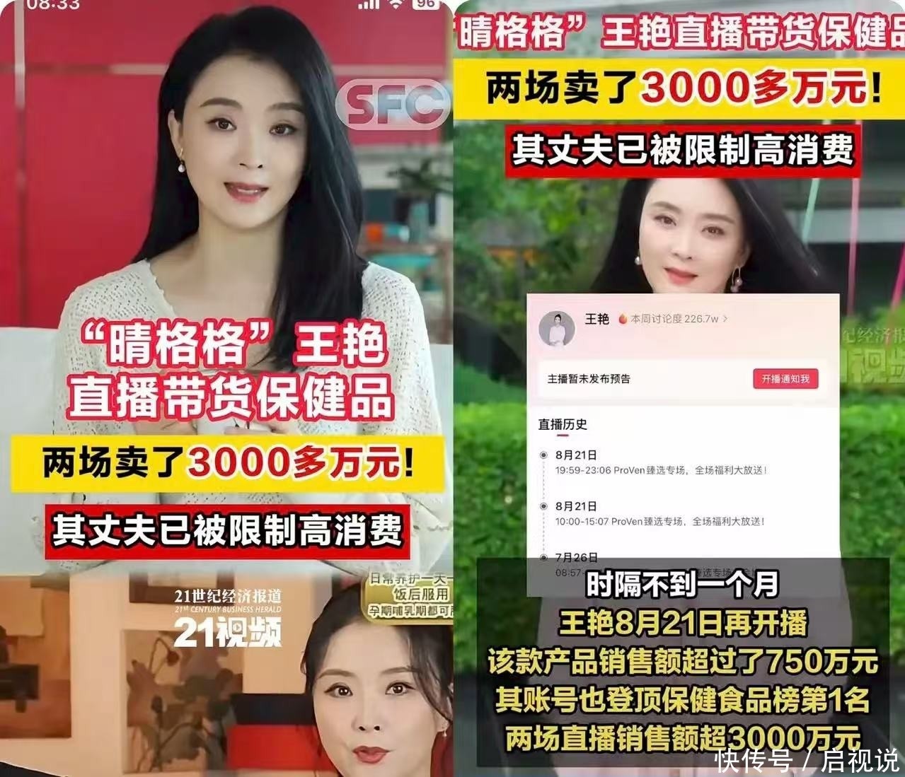 除了拍戏,为了维持生计,王艳还开启了直播带货。