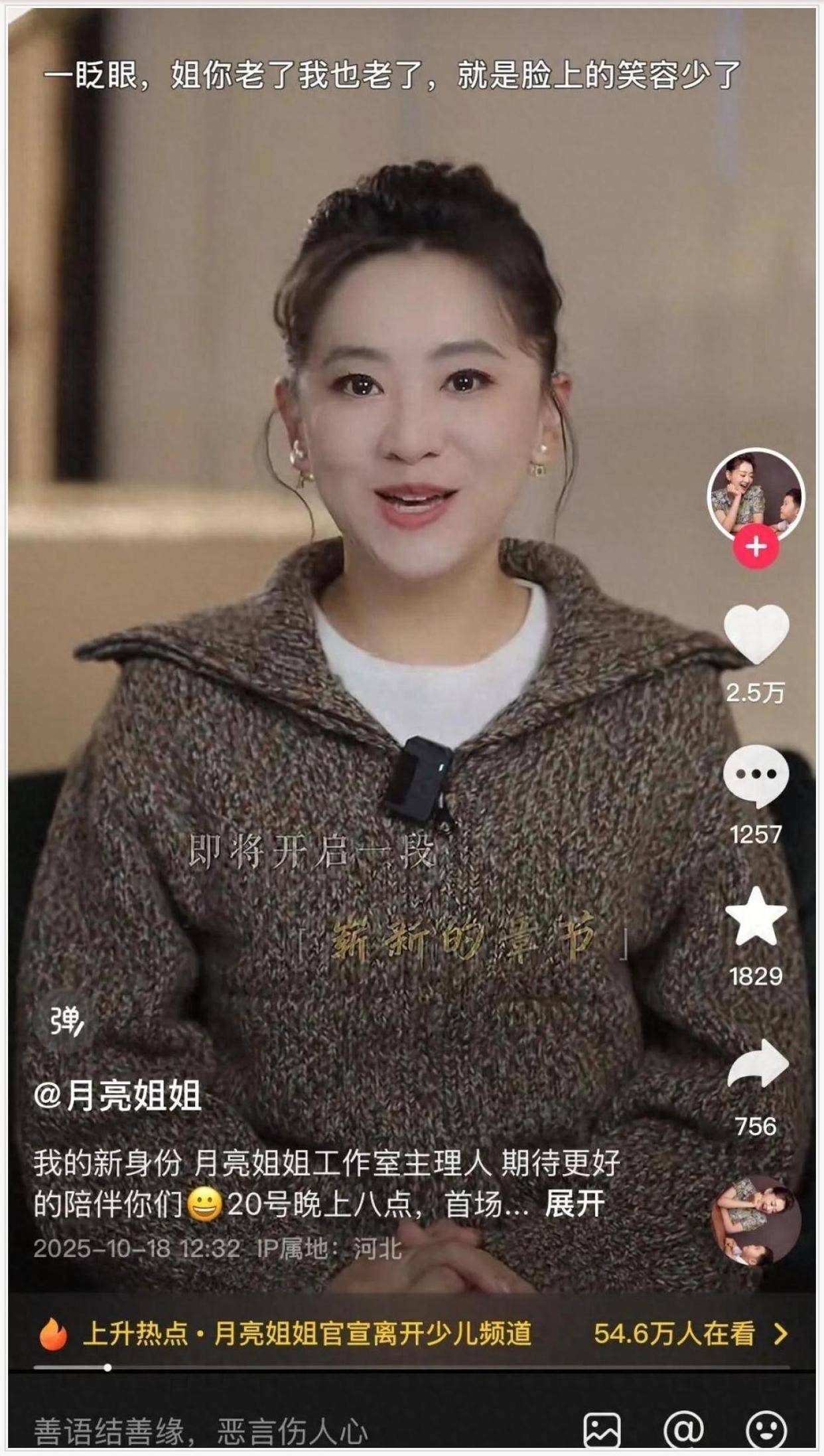 你看 尼格买提都在她视频下留言调侃 说“月亮姐姐不要我们这些小朋友了”,一句话就把人逗笑又惹哭。这哪是针对一个人的告别?这分明是一代人对自己青春的一次集体追悼。我们感慨“童年结束了”,不是因为月亮姐姐走了 而是因为我们终于承认,那个可以无忧无虑、相信电视里一切美好的自己 真的长大了。