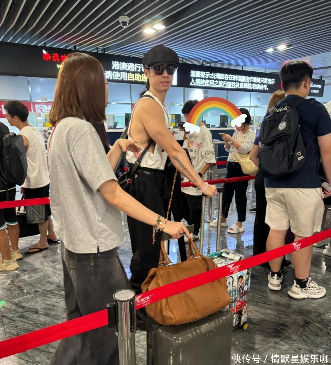 有人在机场碰巧遇见他,吴建豪穿着白色背心,戴着贝雷帽,一手推着行李箱,看着挺精神的。他的手臂肌肉鼓鼓的,文身若隐若现,走起路来带风,一看就知道平时经常锻炼。