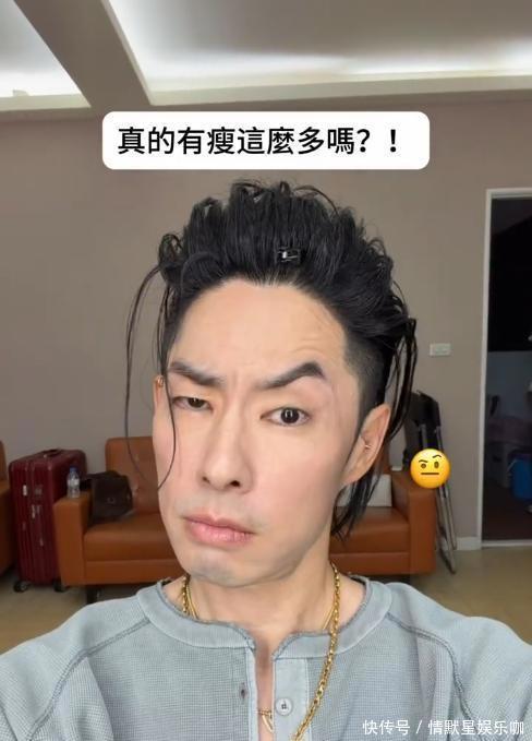 今天下午,他把事情闹得挺大,赶紧又发布了一段视频,想澄清以下情况。只见他留着长发,穿着灰色圆领衫,又戴着金链子,盯着镜头,一脸惊讶地问:“真的瘦成这样了吗?”他一边左右晃头,一边让你清楚地看到正面、侧面和下巴的样子。