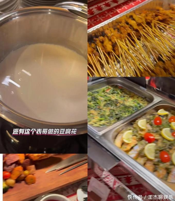 家中的聚会真的很有趣,除了传统的酒水,还有许多家里制作的佳肴,如表哥制作的豆腐花,爸爸妈妈制作的文莱当地美食,以及吴尊自己制作的各式串串。必须承认,富有的人们的聚餐方式确实与众不同,各种各样的佳肴令人垂涎三尺。
