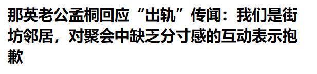 ?????? 极目新闻,2025-09-10,那英老公孟桐回应“出轨”传闻:我们是街坊邻居,对聚会中缺乏分寸感的互动表示抱歉