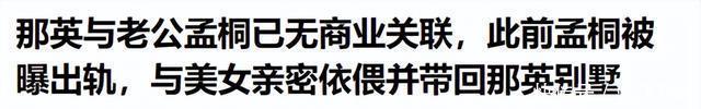 ?????? 从为爱奋不顾身却被辜负,到以为找到了可以依靠一辈子的靠山,结果最后也没有落得圆满,反反复复在男人身上栽跟头,真是让人不知道说什么好了。?????? 参考资料:?????? 极目新闻,2025-09-10,那英与老公孟桐已无商业关联,此前孟桐被曝出轨,与美女亲密依偎并带回那英别墅