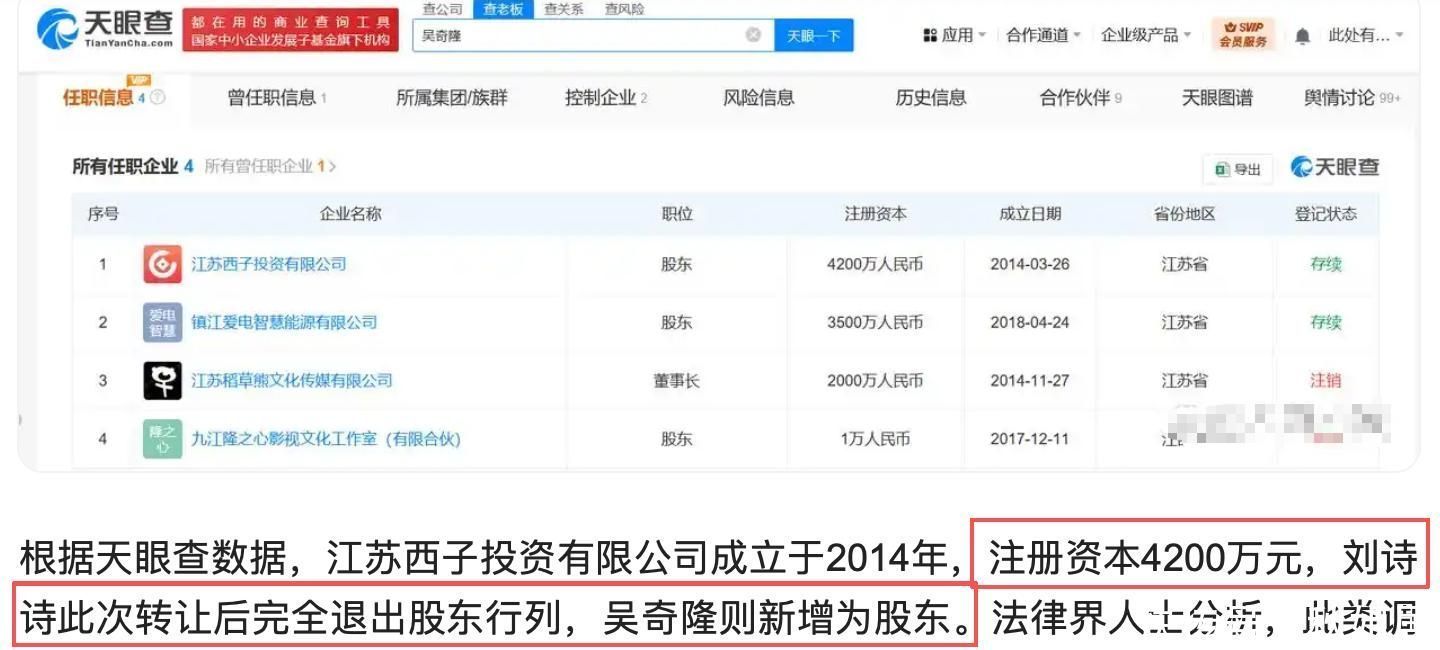 更引人注目的是,2025年初,她将个人控股公司股权悉数转让予吴奇隆,并陆续注销关联企业主体。
