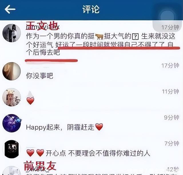 ?????? 王文也小时候就爱追星,先是迷冯绍峰,那时候冯绍峰跟倪妮谈恋爱,还得带着她一块儿出门。后来她换了目标,盯上井柏然,利用老爸的关系,井柏然去湖南卫视跨年,她就在后台等着。井柏然还特意去她生日趴体,俩人互动不少。?????? 结果井柏然跟倪妮官宣了,她也就收手了。2016年,岁,在美国留学时候公布初恋男友蔡键承,男方家境不错,有游艇那种级别。俩人没处多久,几个月就淡了,2017年男方在ins上晒新女友,她气不过,发消息说对方会后悔,男方怼回来,说没人稀罕她家境。?????? 年轻人恢复快,很快就开启第二段,对象是上海国际学校一个高个子成绩好的男生,姓施,家底也厚实。施之前有个前女友,身,俩人分手后,王文也接盘。他在朋友圈夸她美丽善良真性情,俩人处得还行,但最后也没成,传闻是施家觉得匹配不够高。