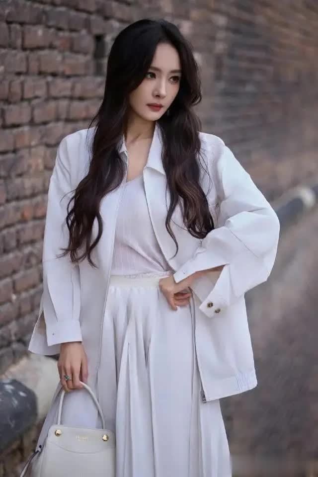 一头自然的长卷发随意披散,发尾的弧度在风里轻轻晃动,没有复杂的编发或盘发,这份 “不费力的精致”,恰恰与 PRADA 的时尚内核不谋而合,也让杨幂的优雅多了几分随性与自在,没有端着的距离感,却自带高奢秀场的气场。