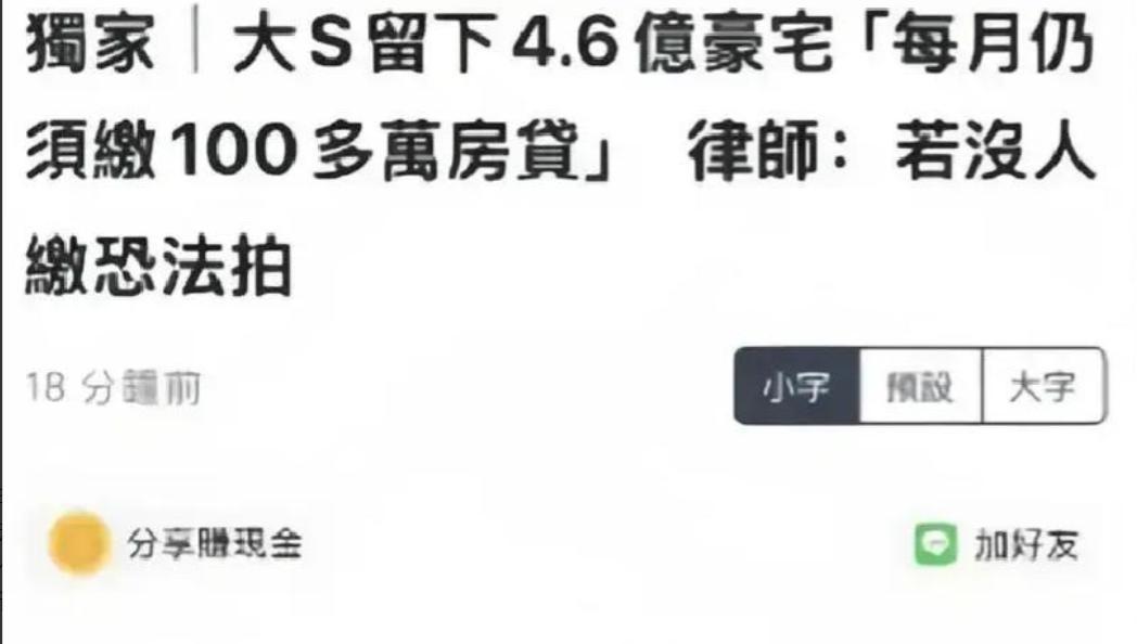 感情上的支持在,但现实生活并不轻松,他现在住的地方问题一直存在,那套位于信义区的豪宅,是大S生前居住的房子,购入价格约四点六亿新台币,房子登记在大S名下,购房资金和后续房贷主要由前夫汪小菲承担。