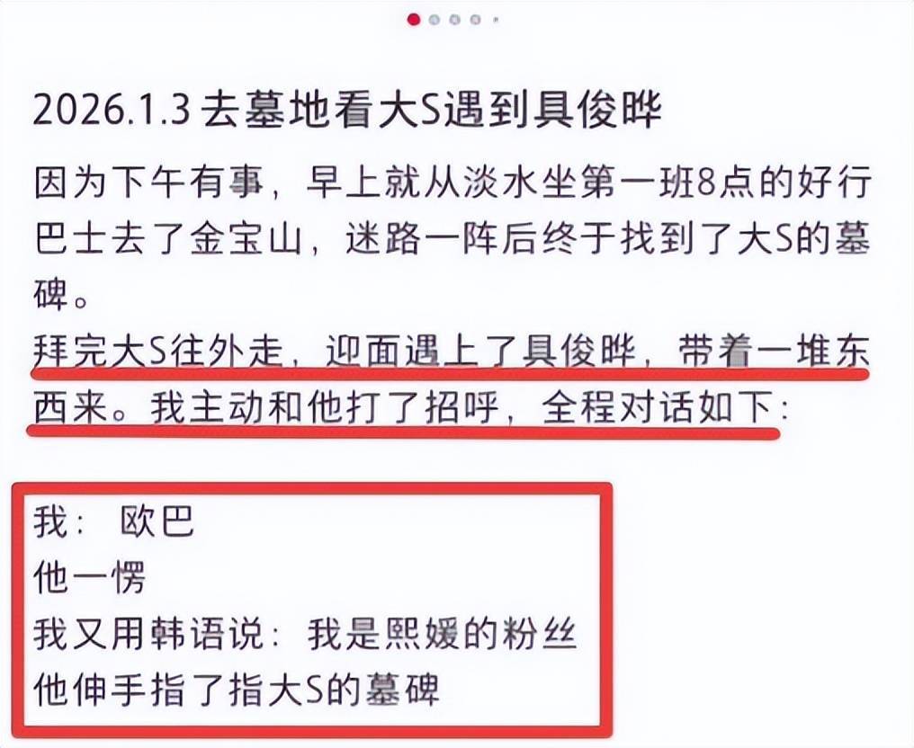 外界也有传言,说具俊晔在韩国的母亲身体状况不好,按照那边的习惯,他可能需要回韩国照顾家人,但时间到了二零二六年一月,他依然留在台北,没有离开的迹象,这里面除了他对墓地的牵挂,徐家人持续的照应也被认为是原因之一。