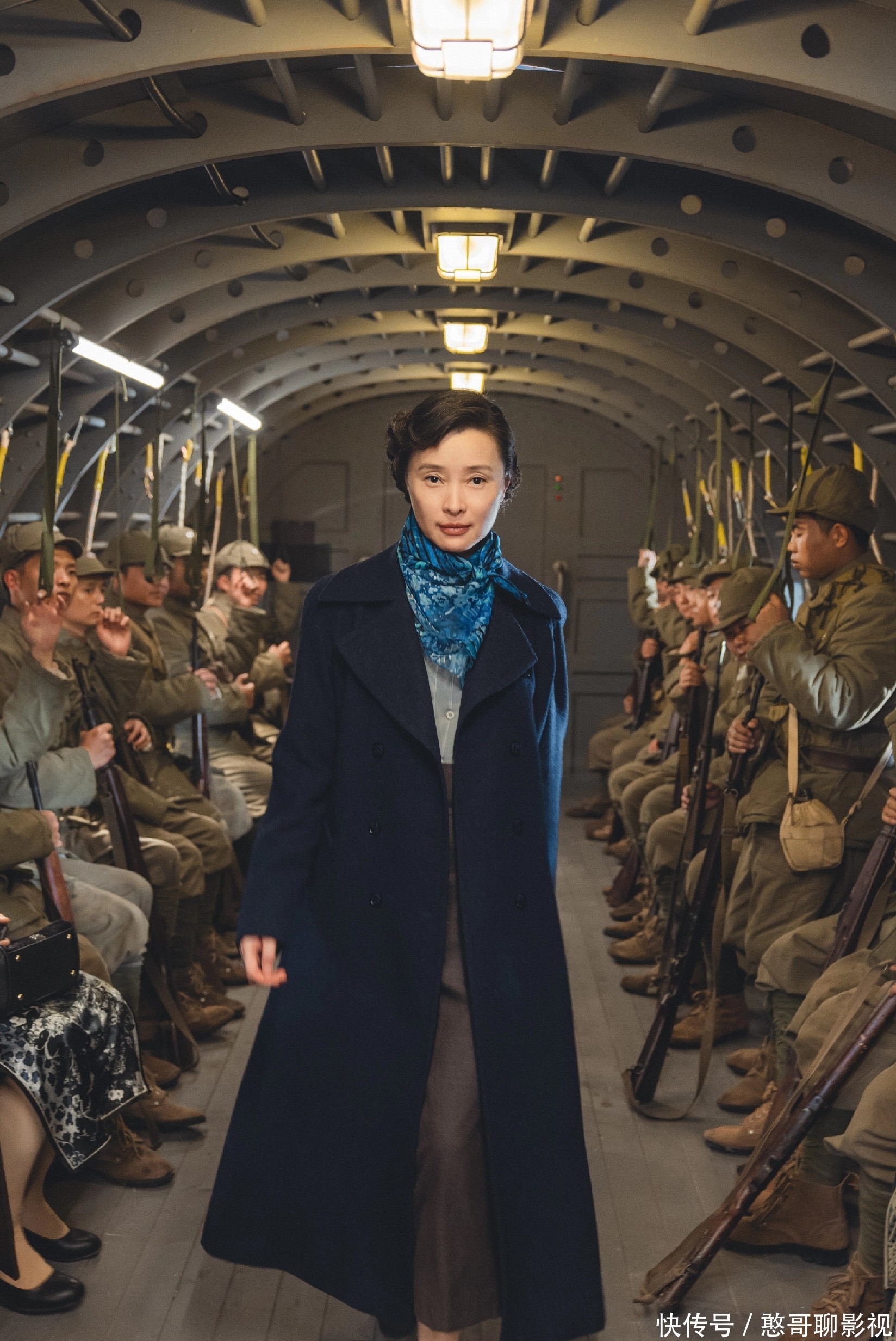 吴越穿着戏中的衣服,站在那里的气质太好了,故事感也超强的。吴越与于和伟搭档拍戏,真的很精彩!