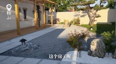 前院整体采用了日式“枯山水”风格的设计,能给人以无限的想象空间,比如青石板加碎石铺就得道路,间或点缀松树、假石和花圃等元素来造景,这样可以让效果变得更加的高雅,而且没有一丝俗气。