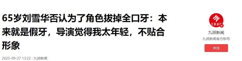 九派新闻:《65 岁刘雪华否认为了角色拔掉全口牙:本来就是假牙,导演觉得我太年轻,不贴合形象》