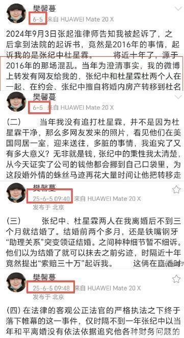 樊馨蔓这九年没白熬。 她两次把张纪中夫妇告赢:一次因杜星霖直播辱骂获.5万,另一次因张纪中公开离婚协议泄露隐私获.5万。 法院判决道歉,这对夫妻宁可赔钱也拒不开口,最后被强制执行登报公告。她发现张纪中离婚前把公司注册资本从数亿缩减到千万,资产不翼而飞。 2016年离婚分到三套房万现金后,她辞去央视《感动中国》总导演工作创业,疫情时靠作品《蚩尤》海外版权翻身。 如今住北平公寓养猫狗,而张纪中凌晨带货打瞌睡,被网友调侃“牡丹花下死的报应”。
