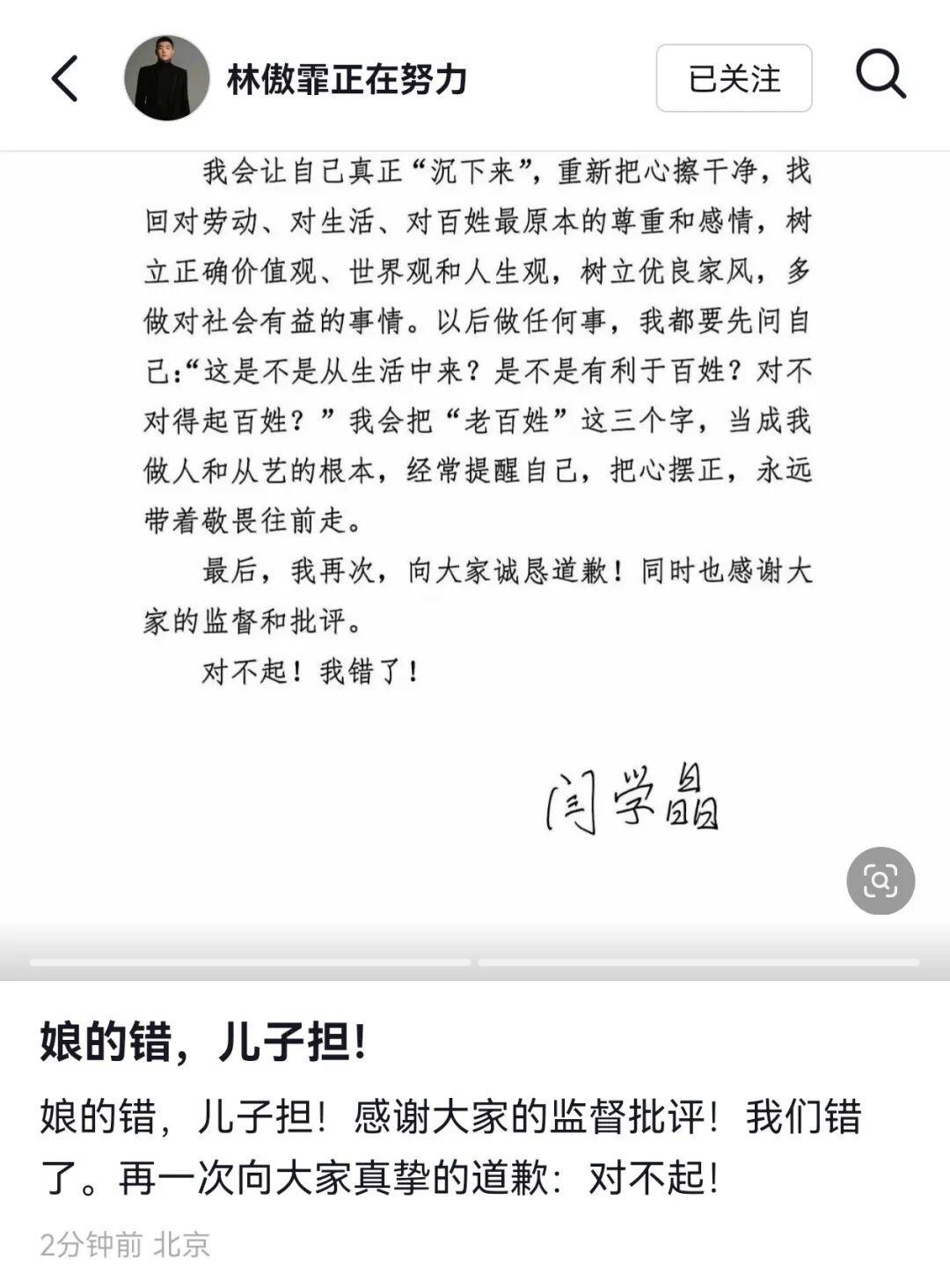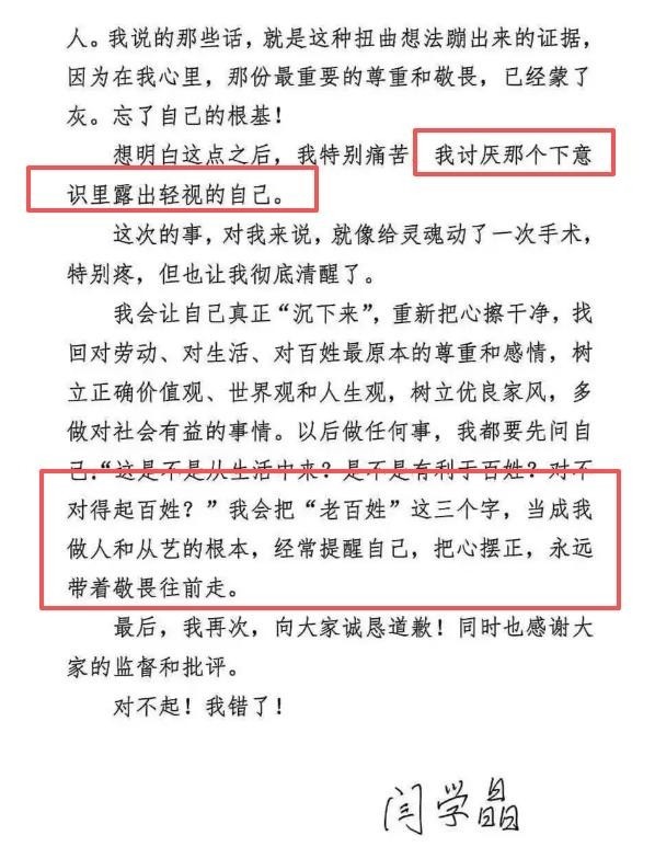17. “我怀着无比沉重的心情向大家诚恳致歉”,并坦承:“思想出现了严重偏差,习惯了掌声与鲜花,渐渐迷失自我,见了更大的世界却误将其化为优越感,忘了来时路”。
