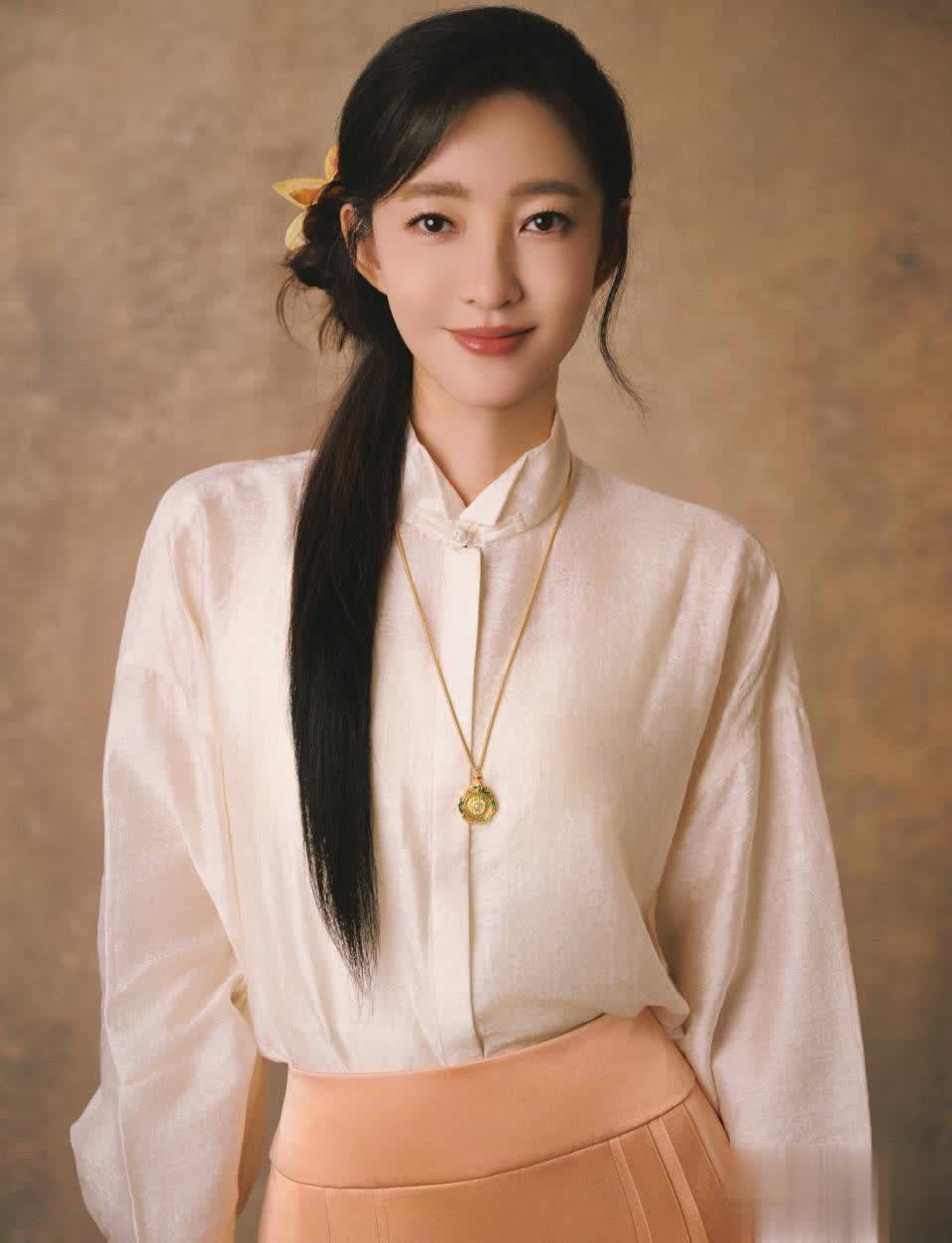 写真里,她身着带有中式立领元素的上衣,搭配浅橙色下装,尽显身姿挺拔。整体体态优雅又舒展,每一个动作都透着从容自信,这无疑是自律带给她的馈赠,让她在镜头前无论什么造型都能完美驾驭。