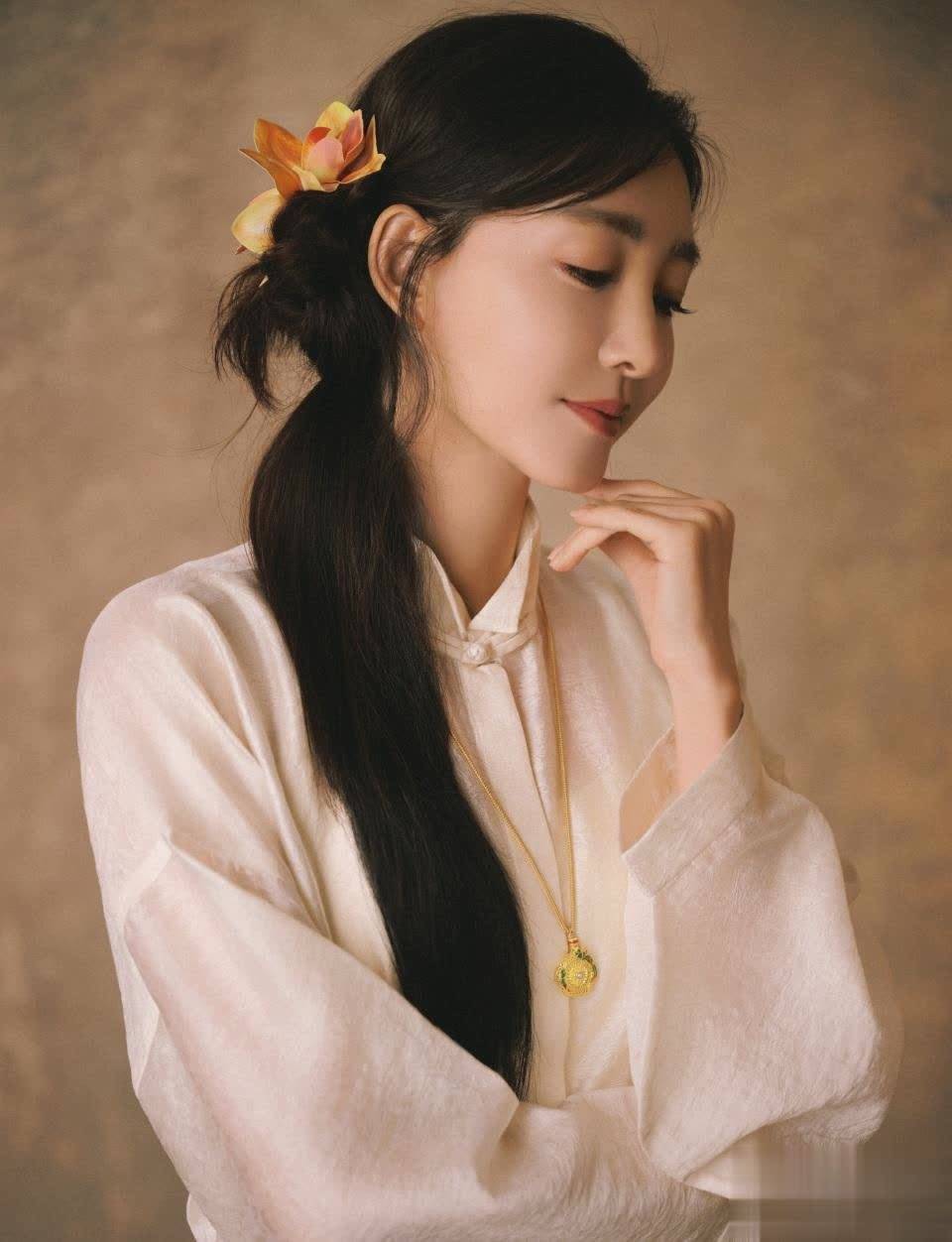 再看配饰,金色的项链点缀其间,吊坠的设计精巧,与整体的中式风格相得益彰,既提升了精致感,又不会过于张扬,尽显东方女性的含蓄之美。头发上别着的花朵发饰,更是为造型增添了一抹灵动与自然气息,仿佛将中秋的花好月圆都定格在了发间。这样的穿搭,把传统元素巧妙融入日常,既保留了文化底蕴,又符合现代审美,轻松打造出独属于王丽坤的 “新中式” 时尚风格。